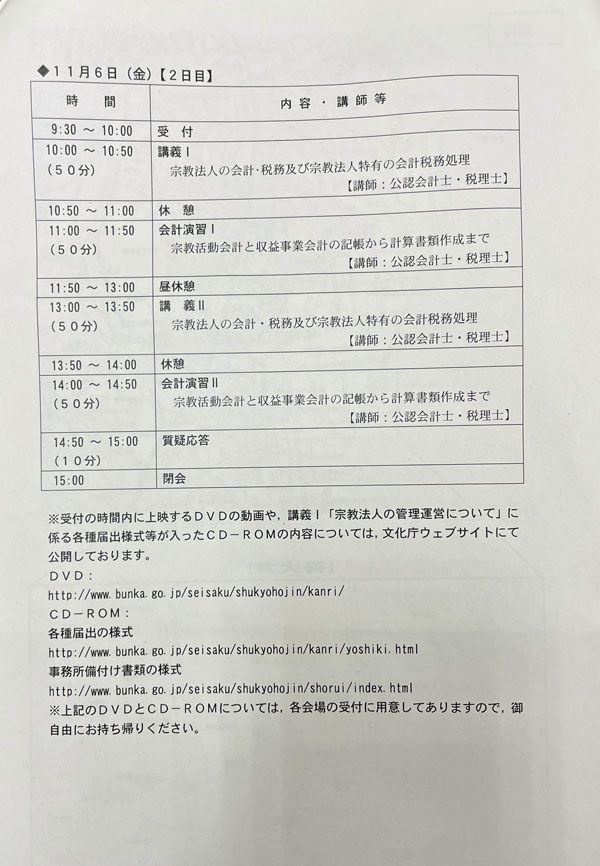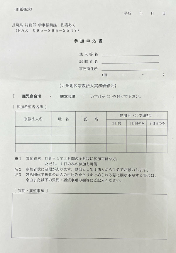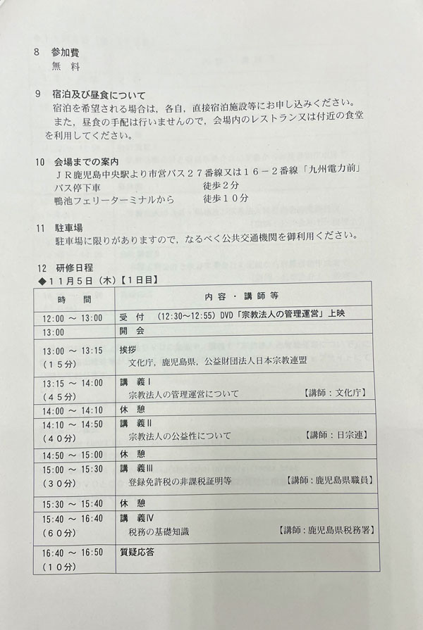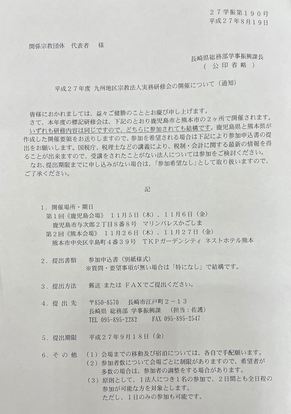 2015年度(平成27年度)九州地区宗教法人実務研修会参加記録及び資料について